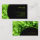 Allmänt affärskort med färsk grönt lämnar på svart bakgrund. Lämplig för miljöverksamhet, jordbruk, grönt, naturprodukter eller kosmetika m.m. Helt anpassade, lägg till din egen information och välj form och format.