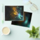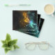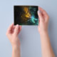 Flygning av glödande, grönt, artificiellt ritad drakflygning med genomskinlig grönt och gult vingar på ljusande nattbakgrund med träskväxter och eldflugor. Glowing Dronfly.
