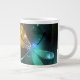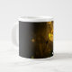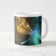 Flygning av glödande, grönt, artificiellt ritad drakflygning med genomskinlig grönt och gult vingar på ljusande nattbakgrund med träskväxter och eldflugor. Glowing Dronfly.