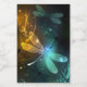 Flygning av glödande, grönt, artificiellt ritad drakflygning med genomskinlig grönt och gult vingar på ljusande nattbakgrund med träskväxter och eldflugor. Glowing Dronfly.