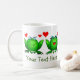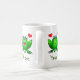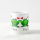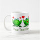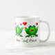 tecknader från Lycklig grönt, dubbla, kärlek, söta originalkonst. Det här är en Spara av Swamp-produkten! En del av intäkterna går till att stödja bevarandet av våtmarker och miljömedvetenhet. Du kan lägga till ditt meddelande på båda sidor av mugg. Du kan skicka ett annat meddelande på vardera sidan om du vill. Ändra texten i båda textrutorna. Använda anpassningsalternativet om du vill ändra teckensnitt storlekare, stil eller färg. Du kan till och med ersätta en eller båda bilderna.