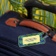 Få ut ditt bagage på en karusell med unika märkre! Denna magiska, mystiska, mystiska bagagetagg har en strålande färgad, tredimensionell cirkulär abstrakt mönster i kaleidoskopisk kurvor och cirklar i grönt, blått, guld, turkos och gult. Anpassa texten på baksidan med din personliga information.