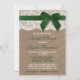 Det här regummerade grönten med båge, bajsar och snöre inbjudningskort för möhippa kommer att göra perfekten känd för vilken brud som helst! Utformningen har en underbar bakgrund av strålningseffekten med en romantisk vintage vit snöre-effekttrim avslutat med ett förbluffande band av grönt med båge. Dessa inbjudningar kan vara en personlig för ert särskilda tillfälle och skulle göra perfekten till ett tillkännagivande för varje rustiskt bröllop, möhippa, förlovningsfest, födelsedagsfest och mycket, mycket mer. *Observera att Zazzle endast säljer utskrivna inbjudningar så dessa inbjudningar har inga egentliga överlappningar, snöre, bågar eller band.