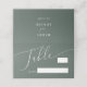 Minimal och enkel platskort för bordsnumret för bröllop med ett modernt skriptteckensnitt som säger "bord" med en tom rad där du kan fylla i bordsnumret och gästens namn. Du kan lägga till namnen från bruden och brudgummen på baksidan. Bakgrunden till färg är grönten av skogarna.