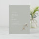 Grönt Minimalistisk skripthandtryckning Blommigt bröllopsinbjudan. En lätt bas i färg med minimalistisk modern typning av ge ger ett enkelt utseende och en elegant som ser ut och känns som framsida och handpressade blommor tillför sådana trädgårdselegansbilder. Helt anpassade. Besök min affär för att se mer bröllop saker för den här utformningen! (1) Om du vill göra ytterligare anpassningar klickar du på länken "anpassa ytterligare" och användor verktyg som är utformat för att ändra mallen. (2) Om du föredrar Avsluta /projektionsyta kan du överväga att välja Papper projektionsyta. (3) Kontakta mig om du behöver hjälp eller matchande artiklar.