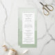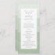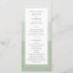 Det här vackra bröllopsprogrammet för grönt och elegant har en vattenfärgsmålad ombre-bakgrund med ett vitt gräns. På baksidan av inbjudan finns samma bakgrund för färgen i sidled. Sök efter matchande objekt i Samlingen Sage Grönt Watercolor Ombre Bröllop.