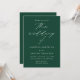Minimalistisk, modern bröllopsinbjudan med dina bröllop-detaljer i ett vanligt vitt brev med "bröllop av" i ett kalligrafiskt skript för elegant. Den mörk grönt bakgrunden kan ändras till ett färg efter eget val. Designad att samordna med vår moderna elegance bröllop-samling.