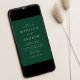Minimalistisk, modern bröllopsinbjudan med dina bröllop-detaljer i vita bokstäver med calligraphy-skript-accents. Den mörk grönt bakgrunden kan ändras till ett färg efter eget val. Designad att samordna med vår moderna elegance bröllop-samling.