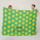söt grönt och gult blommigt med initialer i fetstil, vit text för ett utseende som är enkel, söt och elegant filtsamling.