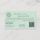 Grönt Minimalistisk och modern QR-kod för skript Tack för att du har lagt till snyggten tack för att du kortat dina kundorder för en varm beröring. Visa din uppskattning och gör förpackningen ljusare med en mjuk grönt och ett modernt bokstäver. Anpassa den genom att inkludera en speciell kupongkod för att uppmuntra till upprepade köp. Lägg till dina medieprofiler för logotyp och social för att hjälpa kunderna att hålla kontakten. Ta med webbplatslänken i QR-koden för enkel åtkomst. Hjälp till att bygga starka kundrelationer och göra ditt varumärke minnesvärt.
