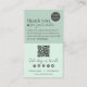 Grönt Minimalistisk och modern QR-kod för skript Tack för att du har lagt till snyggten tack för att du kortat dina kundorder för en varm beröring. Visa din uppskattning och gör förpackningen ljusare med en mjuk grönt och ett modernt bokstäver. Anpassa den genom att inkludera en speciell kupongkod för att uppmuntra till upprepade köp. Lägg till dina medieprofiler för logotyp och social för att hjälpa kunderna att hålla kontakten. Ta med webbplatslänken i QR-koden för enkel åtkomst. Hjälp till att bygga starka kundrelationer och göra ditt varumärke minnesvärt.