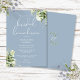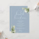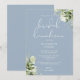 Denna eleganta botaniska gröna blad dammiga blå bröllopsluncheon inbjudan kan anpassas med din information i chic typografi med din monogram initialer på baksidan. Designad av Thisisnotme
