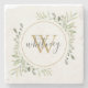 Grönt Monogram Elegant Skrift Stenunderlägg