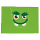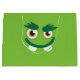 Ett grönt gigantiskt ansikte med orangeögon och buskiga ögonbryn. Gulligt hänga lös för något party!