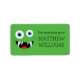 Grönt monstermärke bok namn bricka för barn adressetikett