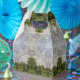 Anpassningsbar, digitalkonsfotografering av coola mönster av hårig grönt moss och texturerad marmor av sandmarmor.