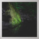 Grönt mossy sten med reflexion i vatten poster