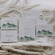 Kortet Rullande raffle biljett i bergsområdet i grönt är perfekt för en strålande babydusch. Utformningen har ett vattenfärgsfärgat, handmålat grönt, som inspirerar till ett landskapstema.