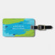 Trendig och modernt bagagemärke som har klara tjocka markeringslagar i grönt och blå med liten stänk grönt och blå ovanpå den framtill och har en mörk blått baksida med mycket liten stänk eller grönt och blå. Anpassa den genom att ersätta platshållartexten. Om du vill ha fler alternativ som att ändra teckensnittet och det är storlekt/färg eller mellanrummet mellan brev klickar du på knappen "Anpassa". *Observera att Zazzle Watermark som visas i zoomförhandsvisningen inte visas på den färdiga tryckta produkten. ©Rosewood och Citrus