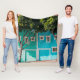 Grönt och blå hus bredvid träd på sidpromenad fleecefilt