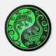 Den här unika yin yang-designen har två geckos som dekoreras med linjer och snurrar. Varje ödlors fötter är utspridda i alla riktningar som skapar ut som om det klättrar på yta i mönster. De två sidorna av yin-yangen är omvända kopior av varandra som skapar en vacker balans inom mönstret. Detta unika gecko mönster är en snyggt tolkning av denna traditionella symbol för naturbalansen.