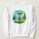 Watercolor stil ai art som skildrar ett golfstift på skiva mellan träd och gräs.