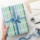 Klassiskt, trendiget strimlade mönster av sotning, blått och grönt.