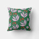 Det är ett kraftfullt men sofistikerat mönster som kombinerar rosa löv och röda bär på gröntens bakgrund och uttrycker naturens livskraft.