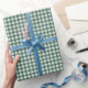 En grönt och en blek blå buffel gör detta till ett underbart val av papper förpackning för dessa speciella gåvor. Det berömda mönster ge är en traditionell nod, medan det nya färg känner sig festligt och modernt.