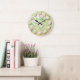 Grönt och Cream Bamboo Löv Wall Clock Stor Klocka