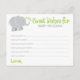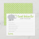 Anpassningsbarna "Sweet Önskemål for Baby"-kort för en babydusch har en baby-elefant med hjärtformade stänk. Polka-punktmönstrad accent visas på kortets baksida. Grönt och grått färg.