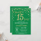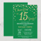 15:e födelsedagsinbjudan med Grönt och Guld Glitter Diamond. Konfetti Guld. Barns födelsedag. Tonåring tonårspojken eller Flickfödelsedagen. Om du vill göra ytterligare anpassningar klickar du på knappen Anpassa och användor verktygen som är utformat för att ändra mallen.