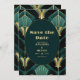 Grönt och Guld Art Deco Bröllop Spara Datumet