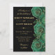 Elegant Grönt och Guld Watercolor Ro klippdel med fjärilar och guld glitter och diamanter på svart bakgrund