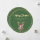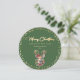 Elegant grönt och guld God jul-kort med en guld-handskriven Julhälsningar och en hjort med vattenfärg på gröntens bakgrund med guld snö. Anpassa enkelt grönt- och guld helgdag-kortet med din familj namn och ett meddelande. Guld-folieeffekten simuleras bara i teckningen.