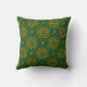 Två bilder visar framsidan och baksidan av en fyrkantig kudde med ett grönt och gult blommönster. Designen är invecklad och ger en livfull och elegant look.