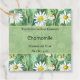 En produktetikett för tvål, kosmetika, bad- och kroppsvårdsprodukter som har en grönt- och gult med kamomillblommor.