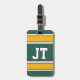 Underbart för Grönt Bay fläkt i ditt liv. Grönt, gult och vit, randig fotboll stil-design med anpassade linjer i vitt och grönt. Färgen som vi har valt för den här märkrn med väskor kommer att matcha dina favoritlag färg. Vi kan bara inte nämna dem här. Perfekt för fläkt inom fotbollen. Frontdelen av märkrn har anpassade monogram med skugga medan baksidan av märkrn har namn och kontaktinformation fält.