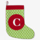 Få redot för julsäsongen med denna initiala strumpa för grönt och för det röda moroccan trycket! Skräddarsy den för att göra det ditt eget, med ditt initialt.