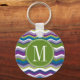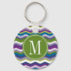 Grönt och Lila Chevron Mönster med Monogram Nyckelring