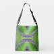 Abstrakt-, grönt- och lila-teckningen på denna korskropp Tote Bag gjordes av ett originalfoto av ZoeSPEAK från ett löv på en kalankoanläggning. De små delarna kant i löv (som knuffats till lilan i denna abstraktion) faller av och blir nya anläggningar.