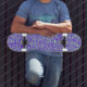 Gör ett fet påstående med vårt Grönt och Lila Design-skateboard. Perfekt för skater i alla åldrar. Den här unika och dekorativa skateboard ger dig dynamisk konst. Idealisk för barn, tonåringar och vuxnor är en fantastisk födelsedagspresent, en stående present till tillfälle eller ett slående tillägg till din mur. Den är i alla storlekar tillgänglig som däcksdäck eller som en komplett skateboard tillsammans med lastbilar och hjul och kombinerar konstnärlig design med sporthälsan