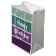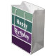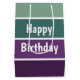 Ett vågrät för grönt och lila har förstört mönster och texten: Grattis på födelsedagen. Du kan klicka på anpassa och redigera texten. Skriva två ord i en rad.