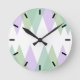 Grönt och lilaska trianglar rund klocka