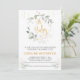Den här konstruktionen illustrerar grönt och guldblad i vattenfärgen stil. Överst på inbjudan - gyllene effekt conetti