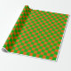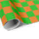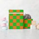 En färgfull grönt och orange schackbräde med mönster papper förpackning.