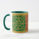 Elegant röd och grönt julkonst med vintage fleur-de-lis mönster i guld.