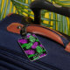Har en tropisk utformning av handflatan löv, i grönt och rosa. Anpassa med namn på framsidan och namn och adress på baksidan.