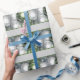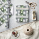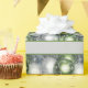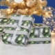 Festiv grönt och vita prydnadsämnen som ställs in mot silver-bakgrund gör detta pappert att välja perfekt elegant för dina helgdag-gåvor.