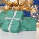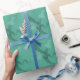 Grönt och söt spöken som flyger på en grönt presentpapper